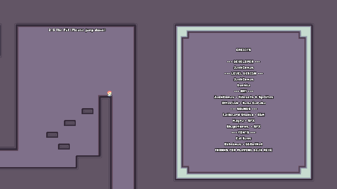 Déjà Rêvé (pronounced /de.ʒa.ʁɛ.ve/ or "deh-zhah ruh-veh") is a platformer game about shooting portals and going through test chambers that repeat themselves. Heavily inspired by Celeste and Portal (and Portal 2), Déjà Rêvé is a-- wait, I mean, it's not perfect, but it's certainly a not bad choice for a fan of both series!